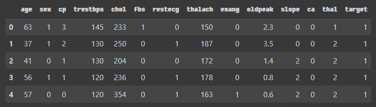 target=1은 심장 질환이 있는 것이고 0은 그렇지 안다는 것이다.